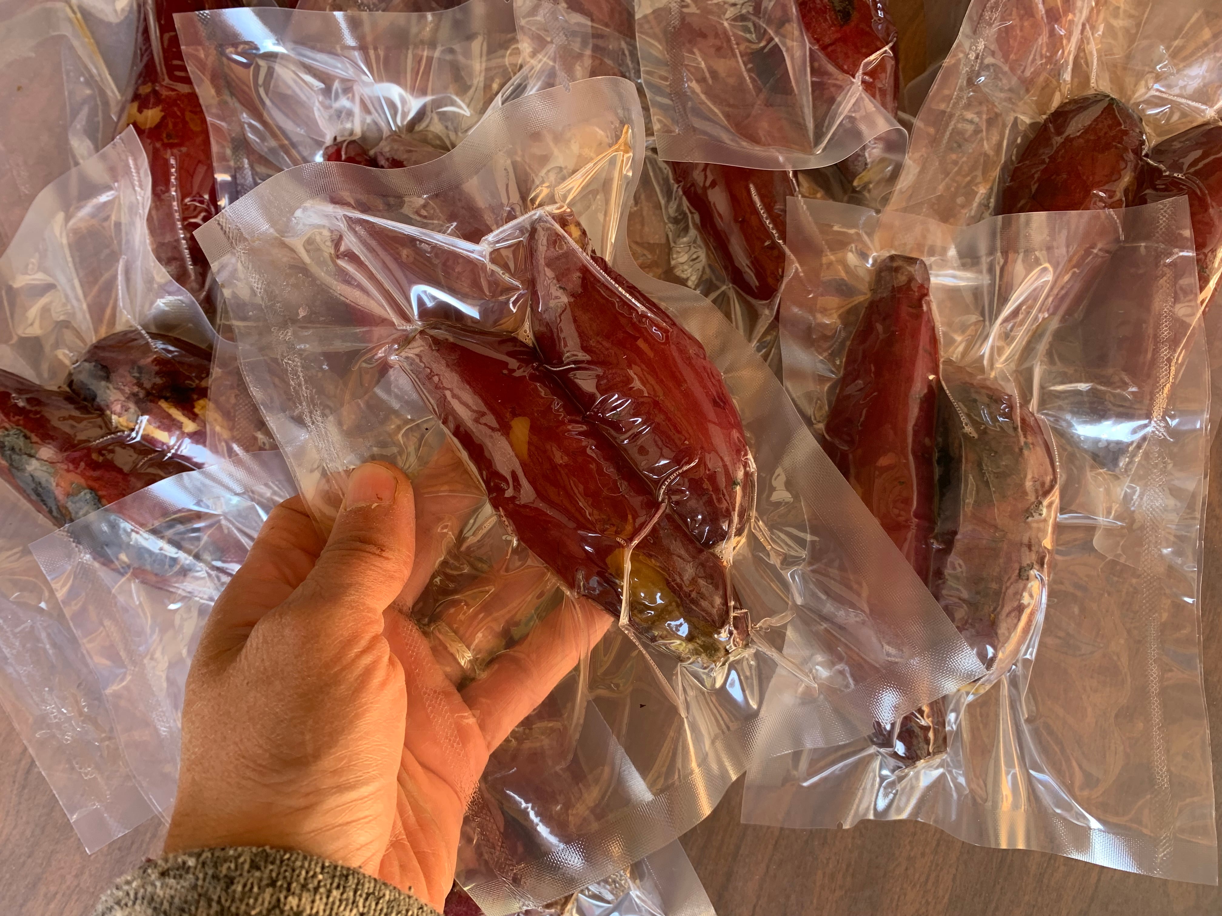 焼き立てを真空パックにしています。クール宅急便(冷凍)での発送になります。