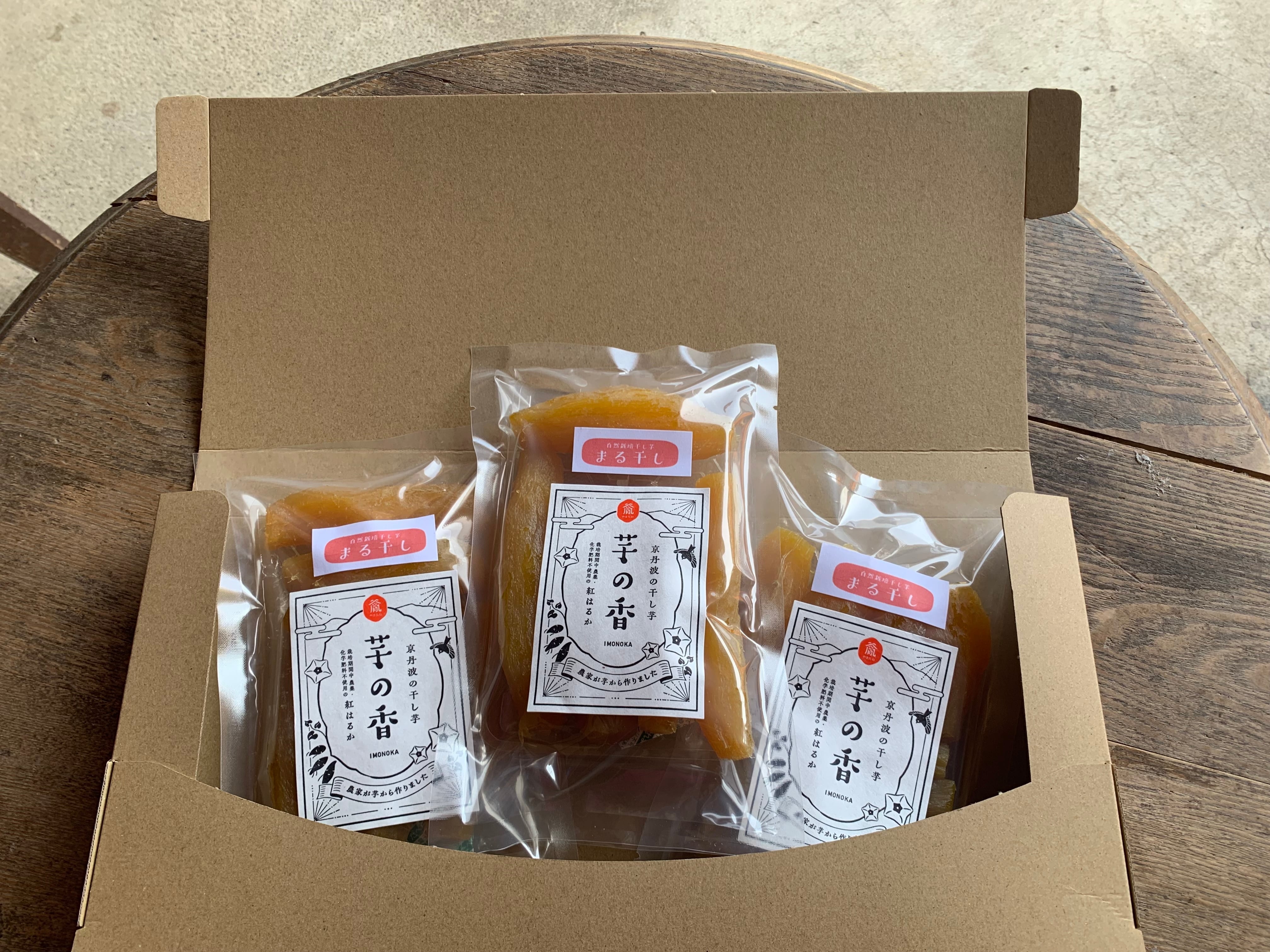 京丹波で、自然栽培によって育てられた珍しい自然栽培の干し芋【丸干しタイプ】をお届けいたします!180g入りの袋が3つセットになっており、自然な甘さが引き立つ逸品です。